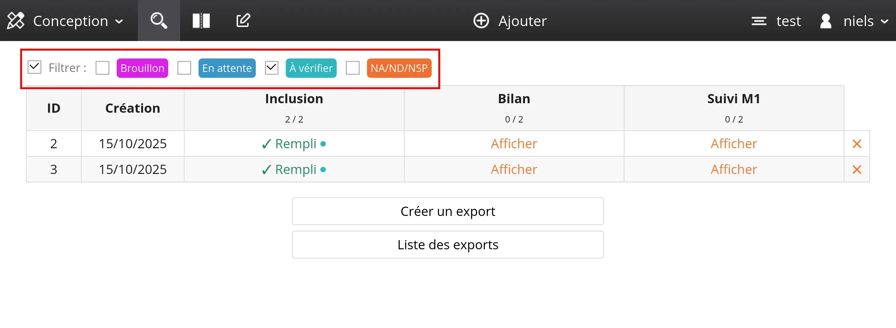 The screenshot below shows two records (ID 2 and 3) with the status "To be verified":
