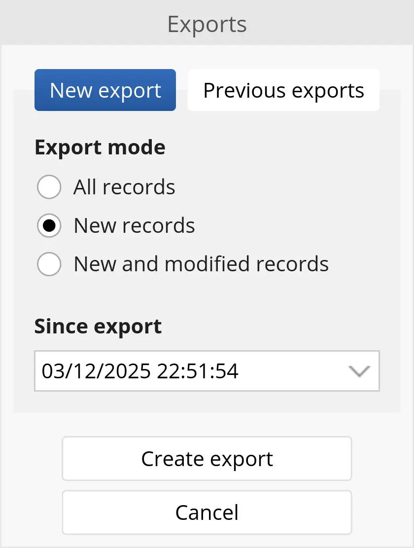 - Records created since the last export