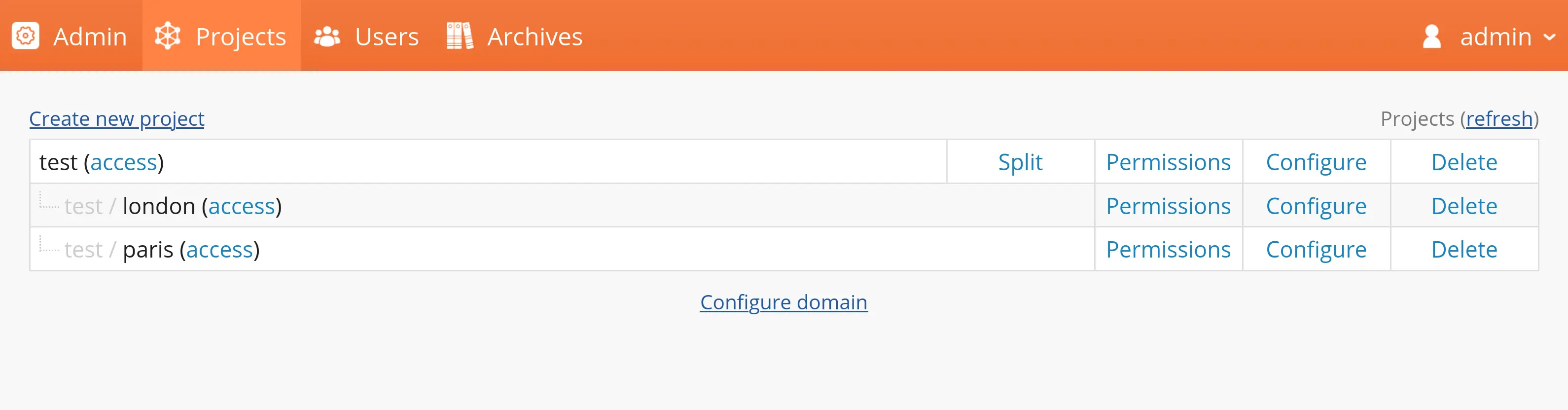 Each division creates a new center, as shown in the screenshot below where two centers are created for the "test" project.