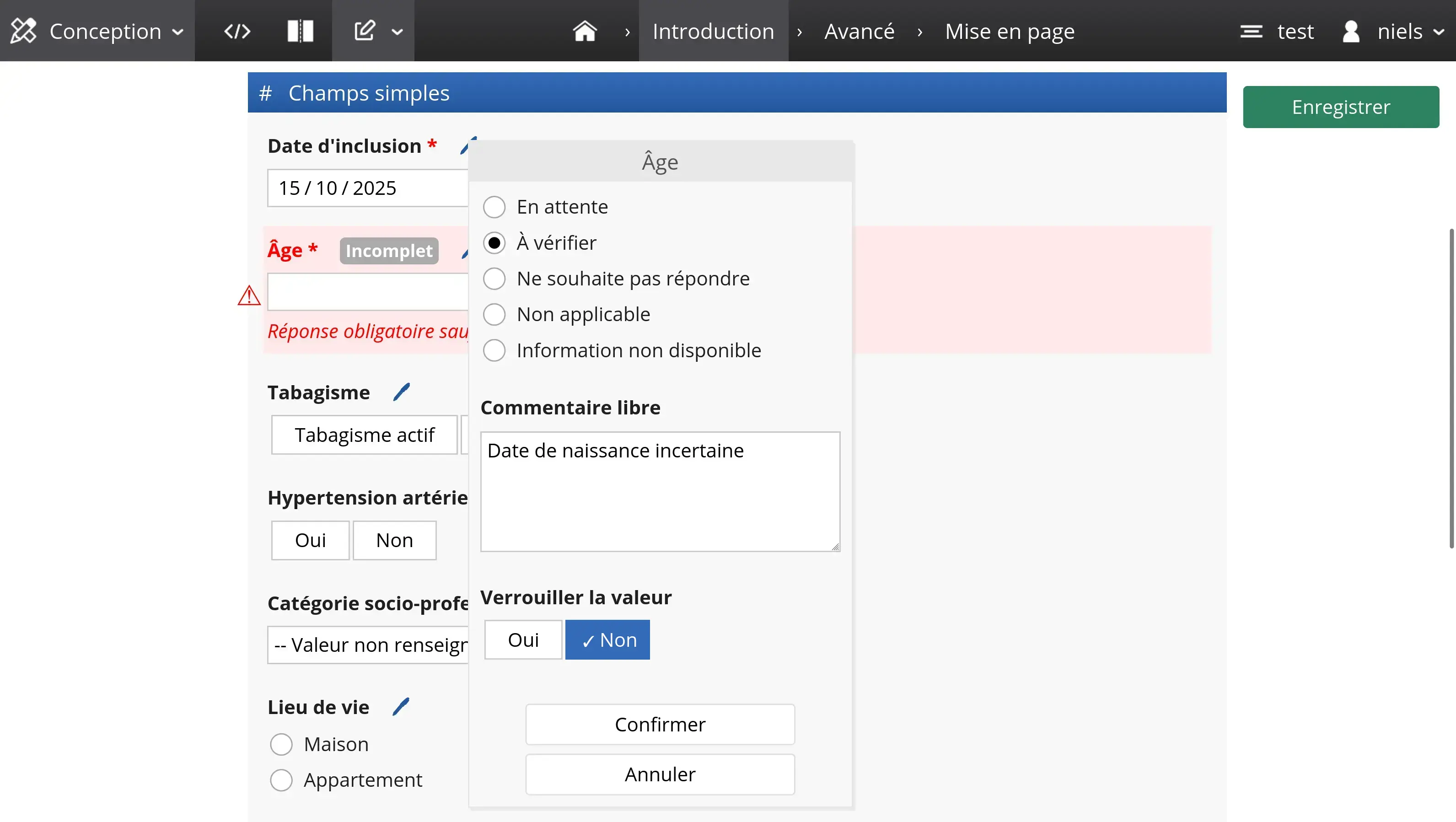 Chaque variable peut être annotée avec un statut, un commentaire libre, et verrouillée si besoin (uniquement par les utilisateurs avec le droit d'audit). Cliquez sur le petit stylet 🖊 à côté de la variable pour l'annoter.