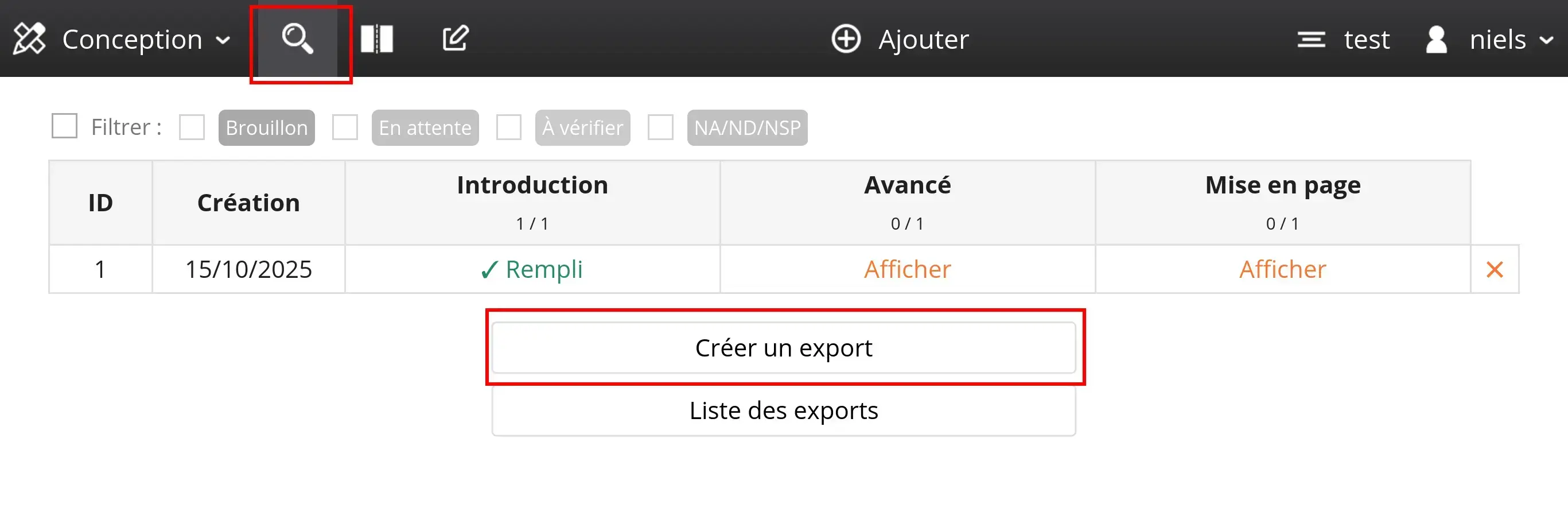 Dans la capture ci-dessus, seuls les enregistrements avec le statut « À vérifier » sont affichés :