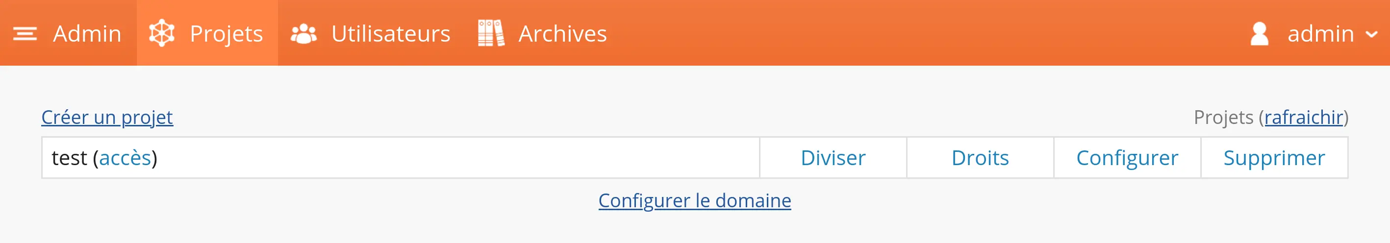 Une fois le projet créé il apparaît dans la liste de projet, avec différentes actions possibles :