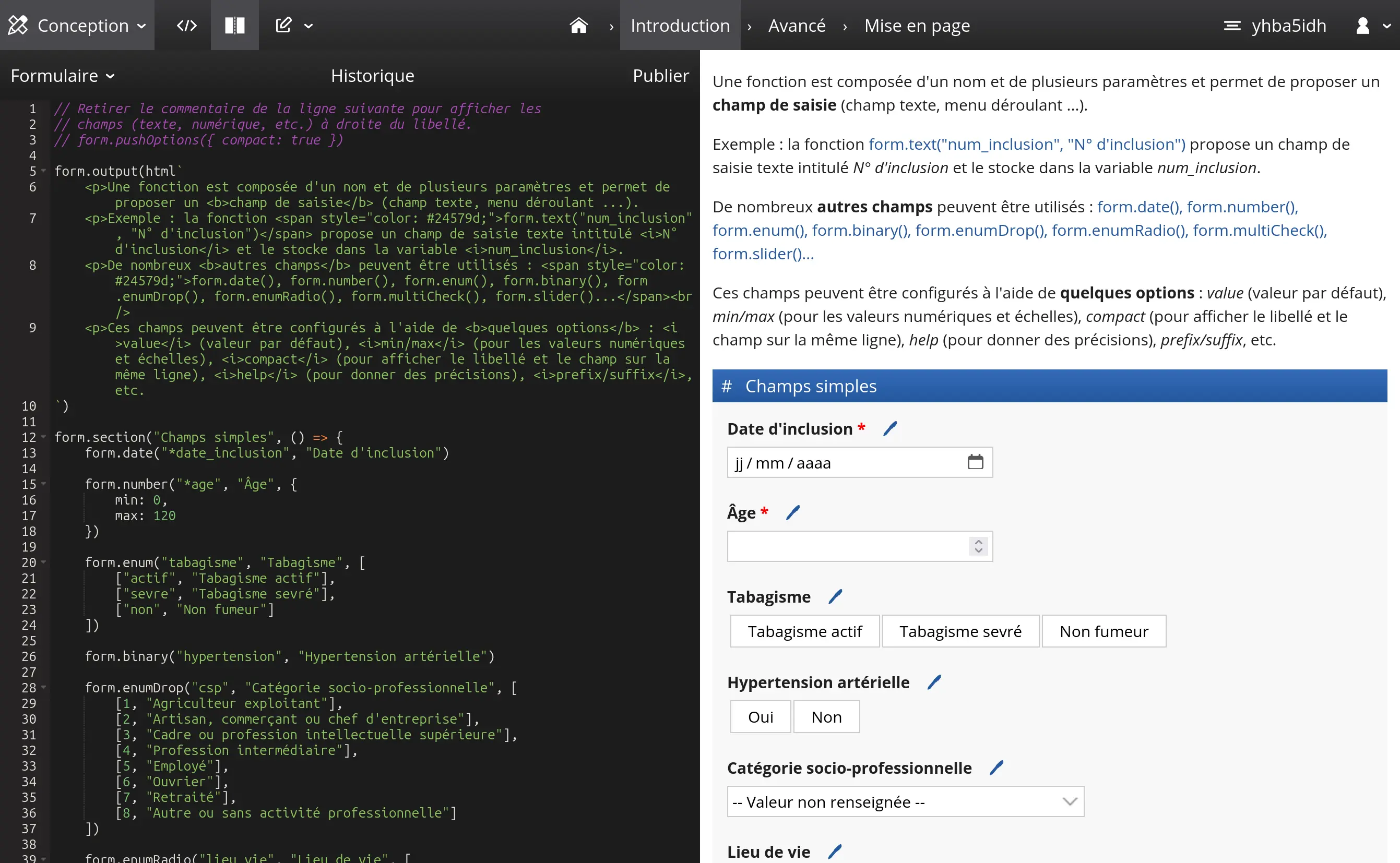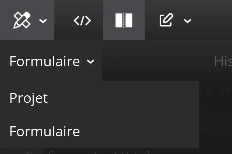 Une fois le mode activé, les panneaux s'ajustent et vous aurez accès à la vue en double panneaux avec le code à gauche et le formulaire à droite :