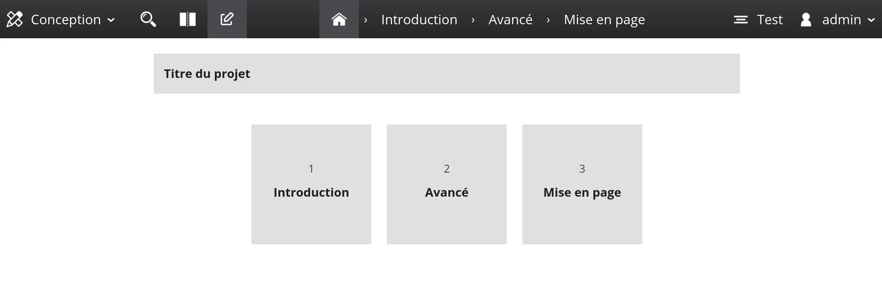 Utilisez le menu de conception pour activer le mode de conception, qui vous permettra de paramétrer votre projet et de créer les différentes pages.