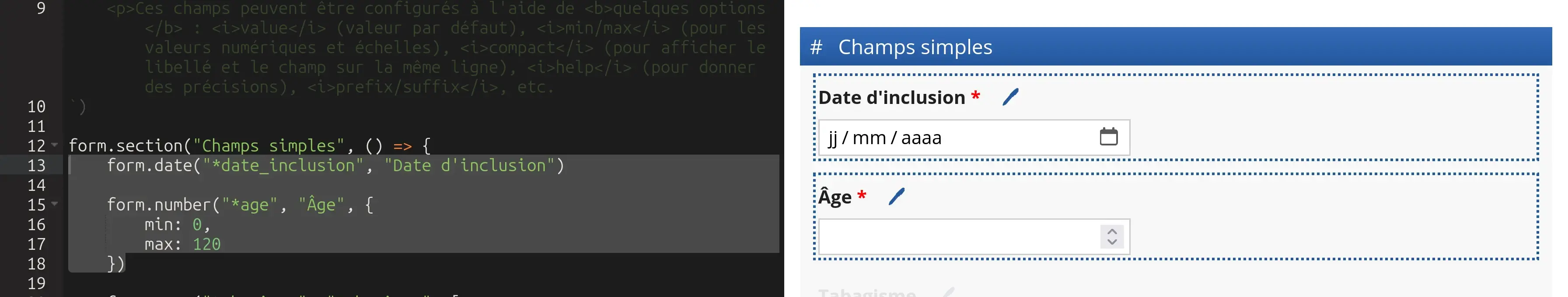 Lorsque vous êtes sur une page de formulaire, deux onglets de code sont disponibles :