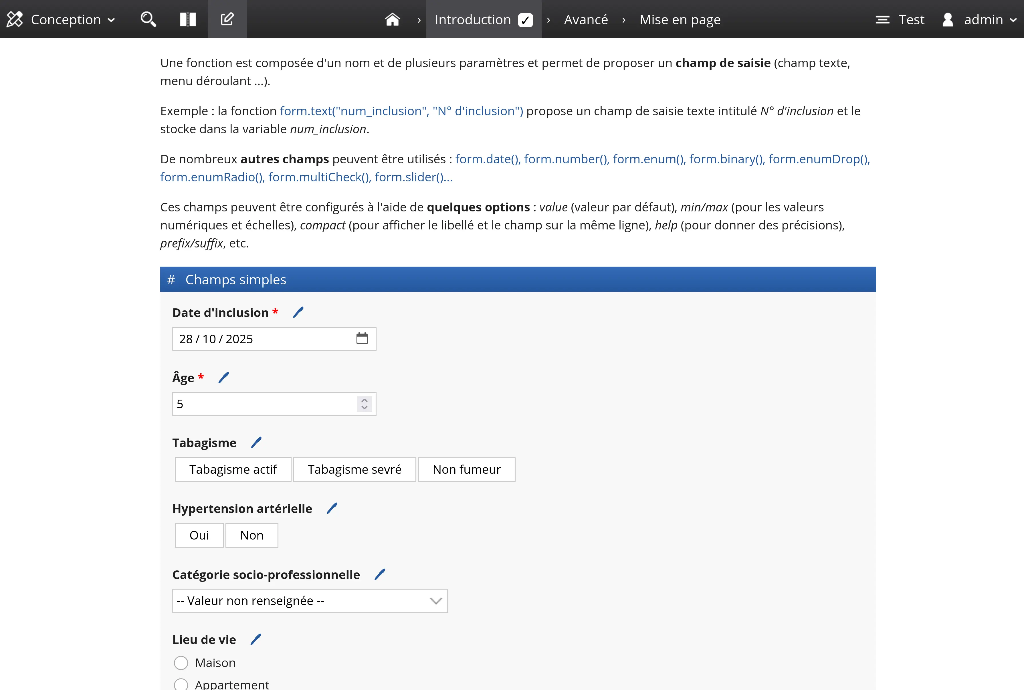 - L'onglet Formulaire correspond au contenu de la page en cours