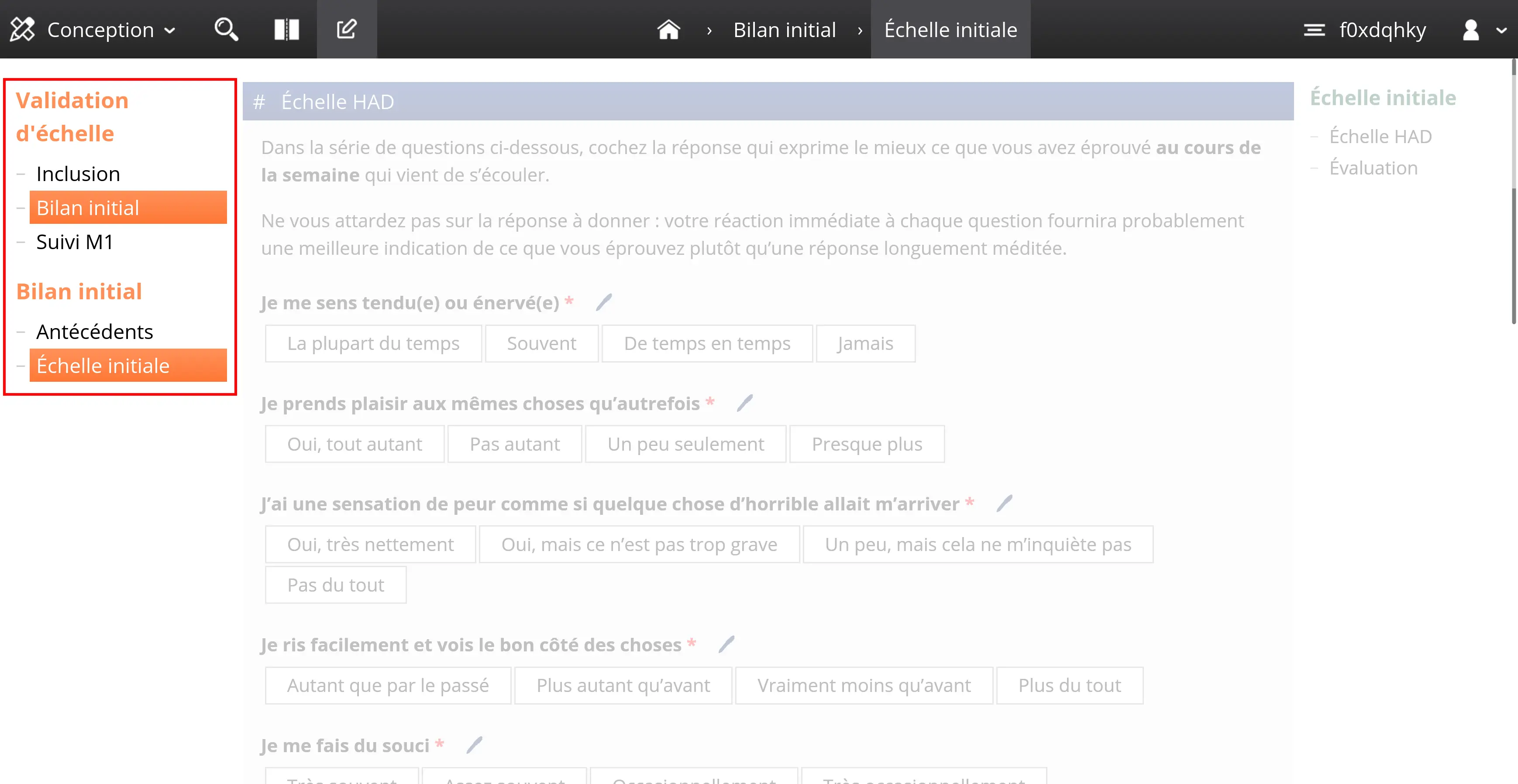 Le menu s'ajuste automatiquement en fonction de la complexité du projet. Lorsqu'un formulaire contient peu de pages, celles-ci sont accessibles via le menu principal, comme sur la capture ci-dessous (encadré rouge).