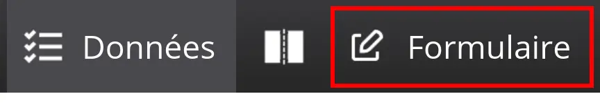 - Les boutons de panneaux qui permettent de choisir entre le tableau de suivi, la page de formulaire ou bien le mode en double panneaux.